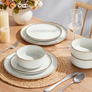 This HaWare 12‑piece dinner set brings a gentle, pearl‑white glow to the table, with its reactive glaze giving each piece a subtly handcrafted charm. The stoneware feels sturdy and reliable, happily handling the microwave, oven, and dishwasher without fuss. I like how practical the design is too—smooth rims, generous bowls, and plates that keep sauces neatly in place. Currently trending with shoppers who love timeless, everyday practicality. It’s a beautifully balanced set that elevates simple, everyday meals with quiet confidence.